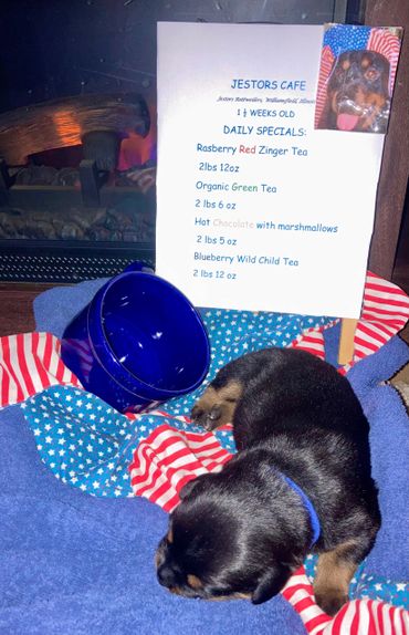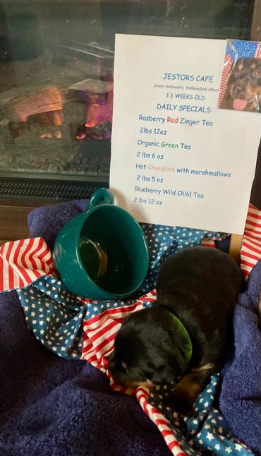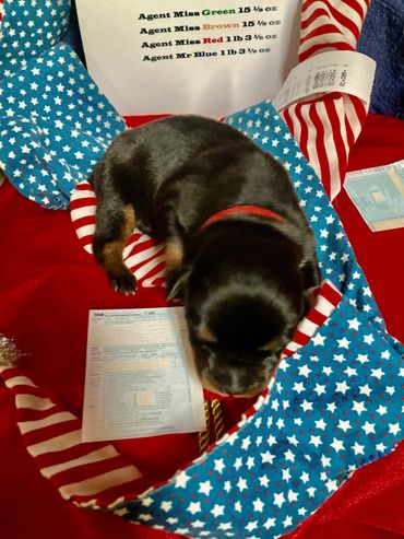 All pups are raised as our personal pet until it becomes yours. Pups are born in a whelping bed right behind our couch where we can keep a close eye on them. Tails and dew claws removed by 4 days old by our veterinarian Knoxville Veterinary Services in Knoxville, Illinois. They will be vet checked at 6 weeks and get their 1st shots then, and at 8 weeks they’ll receive another parvo vaccine so the pups are here until 8 weeks of age and owners are contractually obligated to take to their vet within 24 hours of pick up.